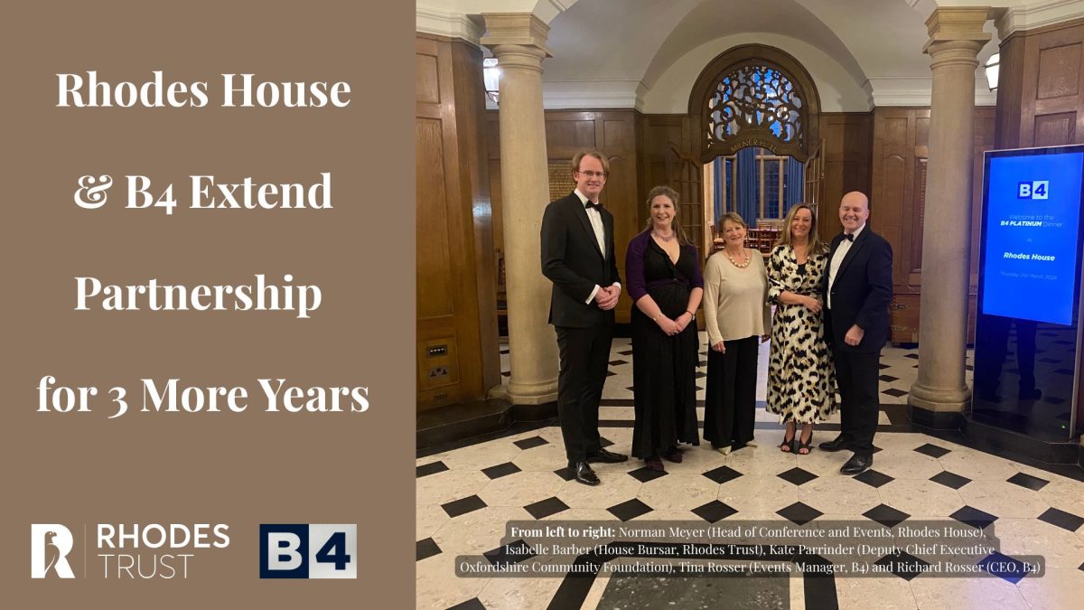 B4, Oxfordshire’s leading business network, is proud to announce a renewed three-year partnership with the iconic Rhodes House, home to the world-renowned Rhodes Trust.